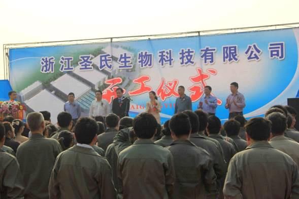 10月26日公司新廠房所在地康山工業(yè)園區(qū)的工地上彩旗飄揚(yáng),路邊矗立著的巨大廣告牌上準(zhǔn)備建設(shè)的新廠房氣勢(shì)宏偉,主席臺(tái)上“浙江圣氏生物科技有限公司開工儀式”十六個(gè)大字分外醒目,公司新廠房開工奠基儀式在這一天順利啟動(dòng)。安吉縣人民政府縣長(zhǎng)王樹、縣常委樂葉俊、縣人大副主任楊路俠、縣政協(xié)副主任曾慶山、縣人民政府副縣長(zhǎng)任峰、縣城西北開發(fā)區(qū)總指揮章宣軍出席奠基儀式,縣各部門代表,園區(qū)所在鄉(xiāng)鎮(zhèn)負(fù)責(zé)人,公司員工代表等…
