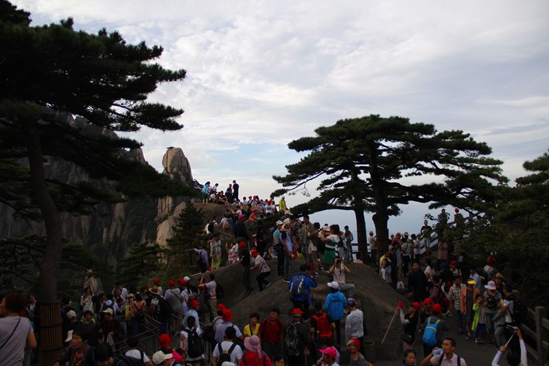 第二天——登黃山,為了可以看到黃山的日出,凌晨三點(diǎn)大家便輕裝上陣登山。當(dāng)大家到達(dá)山頂?shù)臅r(shí)候,太陽也剛從地平線上升起來。在山頂上看日出,整個(gè)畫面都很美,仿佛靜止了的一幅風(fēng)景畫。當(dāng)大家爬到黃山主峰、第二高峰光明頂,遠(yuǎn)可看到東海奇景、西海群峰,近可眺望煉丹、天都、蓮花、玉屏、鰲魚諸峰盡收眼底。在這里站上一會(huì),就深深的體會(huì)到了杜甫當(dāng)年在黃山上發(fā)出的“會(huì)當(dāng)凌絕頂,一覽眾山小”感嘆之情。