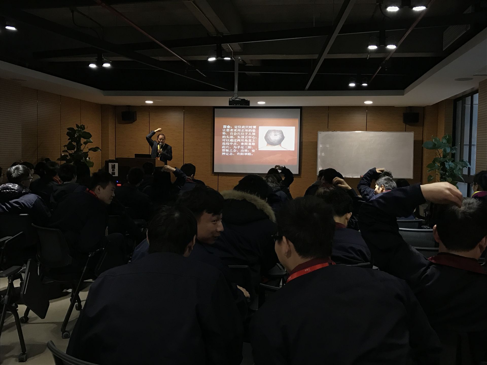 第二部分,也是最精彩的環(huán)節(jié)——由浙江省中醫(yī)藥研究院的陳永燦專家的“胃腸保健與動靜養(yǎng)生”講座。整個講座的內(nèi)容不僅簡單易懂,還有很多養(yǎng)生保健的建議是在我們?nèi)粘I钪?,隨手就可以做到的。比如按百會穴可以安神定志、升陽舉陷;按摩膻中穴可以寬胸理氣、舒暢心胸,還可以提高心臟工作能力等功效;按摩足三里穴,可以調理脾胃、補中益氣、通經(jīng)活絡、疏風化濕、扶正祛邪等功效。在講座會場上,大家都聽的很是認真,有些人還拿出手機頻繁的拍照,有些人則很認真的記起了筆記。大家在受到陳專家的示范下,大家都開始模仿了起來。