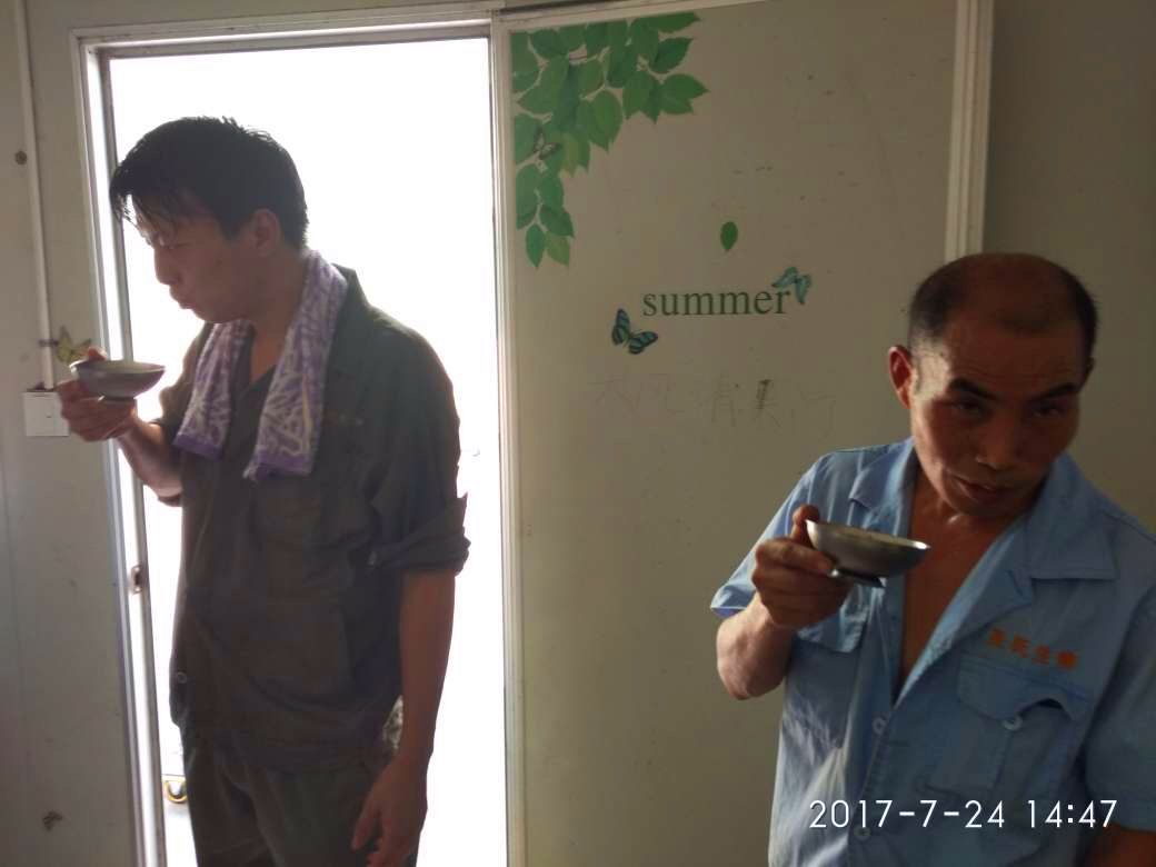 入伏以來,每天下午的2點半到3點鐘,是車間一線員工們必然會集合在快樂車間。因為在這個時間段里,黨員干部們帶著冰鎮(zhèn)過的綠豆湯到這里。在這個炎熱的夏天里,喝上一碗冰鎮(zhèn)過的綠豆湯,那是極爽的!