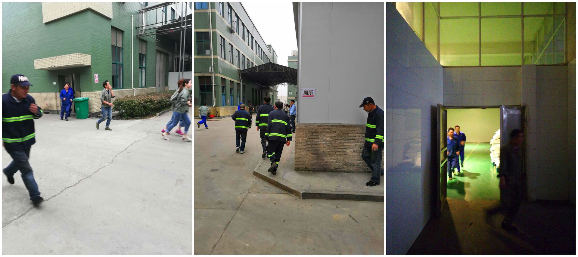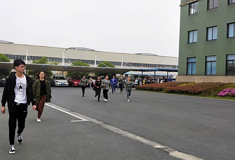 車間人員聽到警報聲后,迅速有序地逃至疏散點。