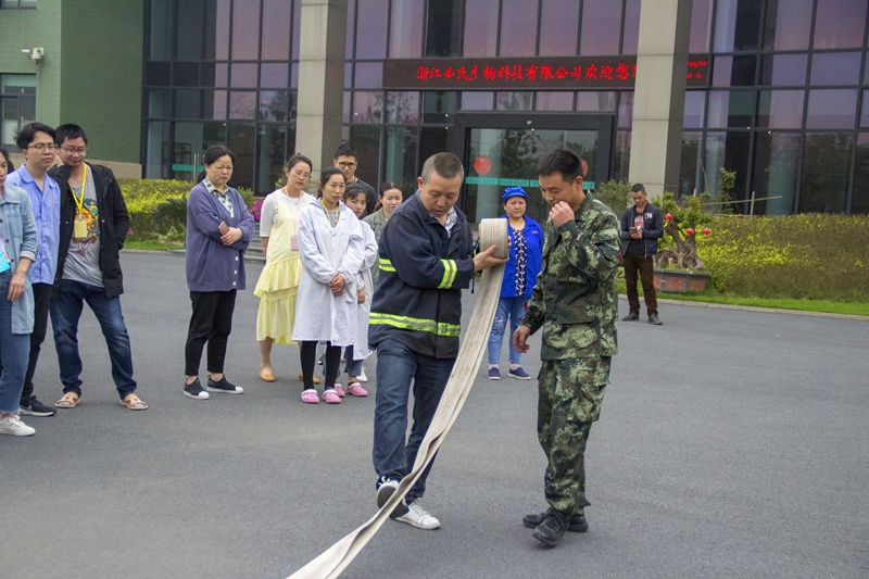 • 為防止我司重大消防安全事故的發(fā)生,完善公司應(yīng)急管理機(jī)制,迅速有效地控制和處置可能發(fā)生的各種突發(fā)火災(zāi)事故,保護(hù)公司財產(chǎn)、員工人身安全,本著預(yù)防為主,防消結(jié)合的方針與應(yīng)急并重的原則, 2019年 4月26日上午,圣氏黨支部組織黨員干部和全體員工開展了一場消防演習(xí)活動,特邀請安吉縣消防大隊的教官們前來公司指導(dǎo)。