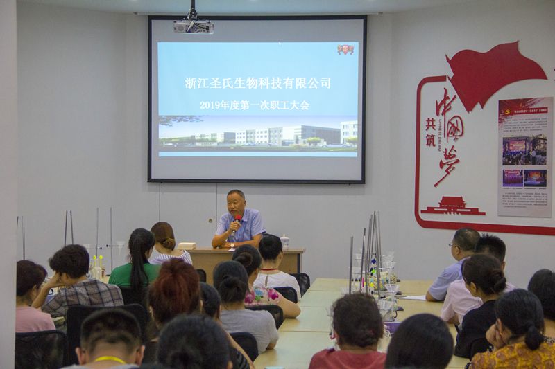 7月22日,浙江圣氏生物科技有限公司2019年度第一次職工大會在行政樓一樓大教室如期召開。大會由董事長胡林福主持并發(fā)言,公司全體職工參加。會議主要對當前的經(jīng)濟形勢和管理現(xiàn)狀進行分析;明確未來發(fā)展方向;調(diào)整公司相關(guān)制度;并對公司對全體員工提出工作要求 。