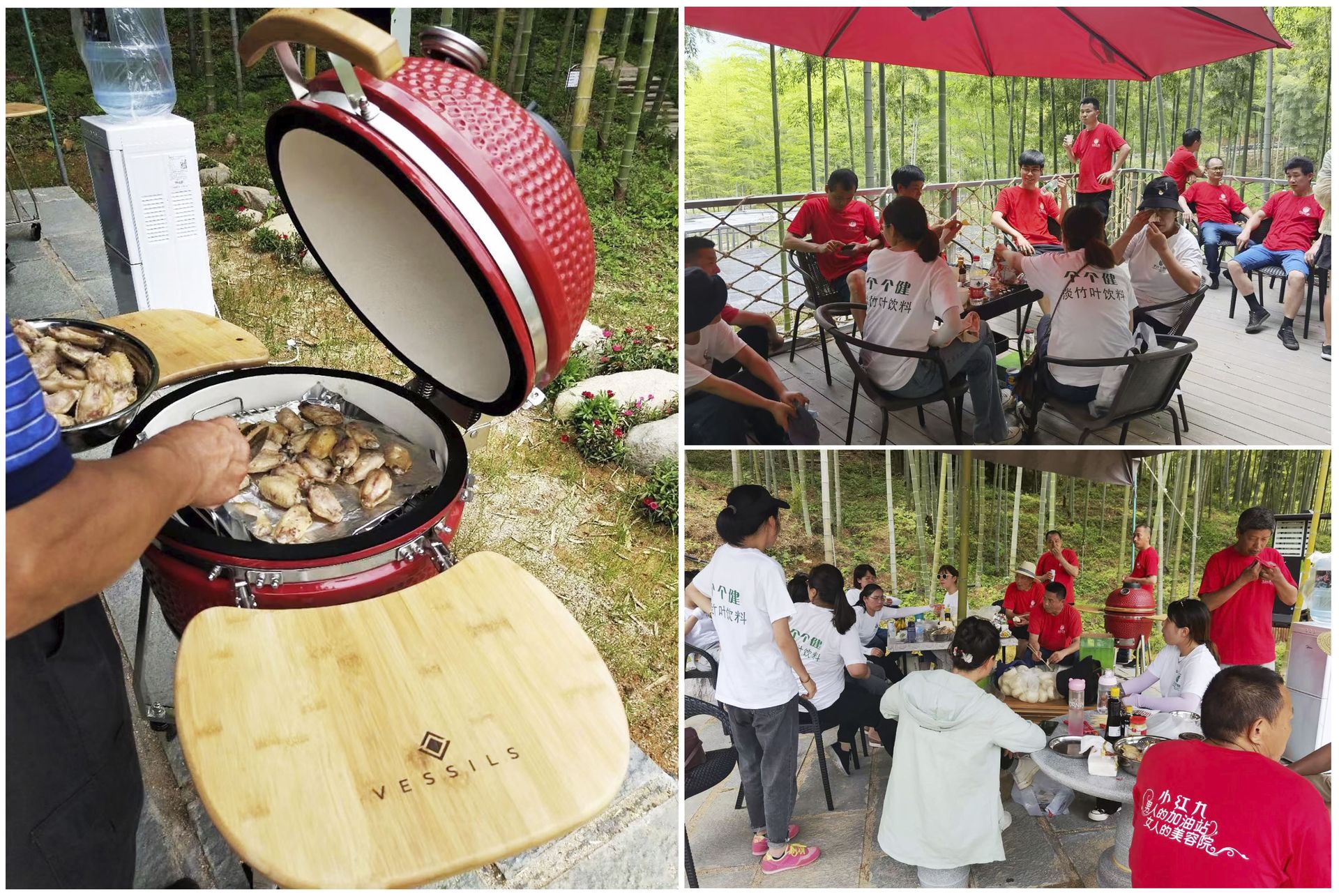 團(tuán)建活動(dòng)結(jié)束后,有三五個(gè)伙伴一起騎上一輛觀光自行車(chē)前往的,也有跟隨余村景區(qū)講解員一起步行前往的,來(lái)到“林下經(jīng)濟(jì)觀光區(qū)”里一起“竹林燒烤”的午餐時(shí)光。大家圍著燒烤爐子,彼此間相互學(xué)習(xí)燒烤經(jīng)驗(yàn),或討論著上午的團(tuán)建拓展活動(dòng)的細(xì)節(jié),或欣賞這竹林間的片片美景……你嬉我笑,歡聲笑語(yǔ)縈繞在半空,同事間的情誼隨著陣陣香味逐漸升華。